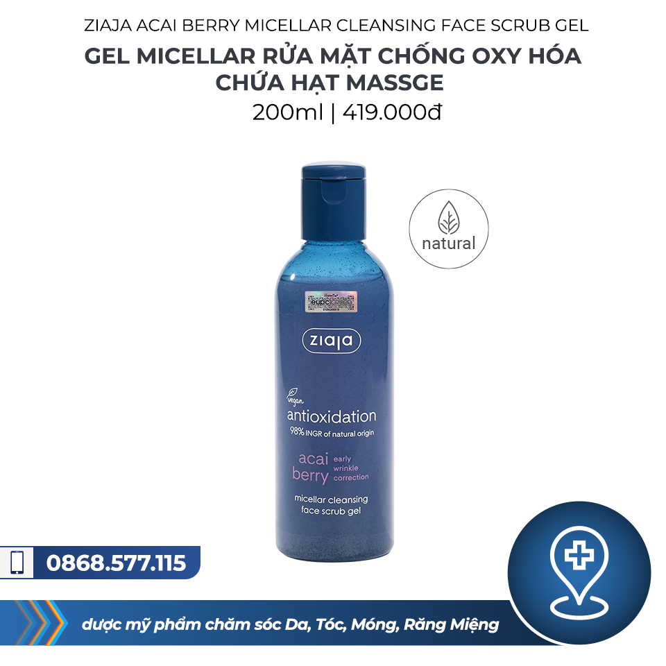 | Tên sản phẩm | : | Ziaja Acai Berry Antioxidation Micellar Cleansing Face Scrub Gel 200ml - Gel Micellar rửa mặt Chống Oxy hóa chứa hạt massage |