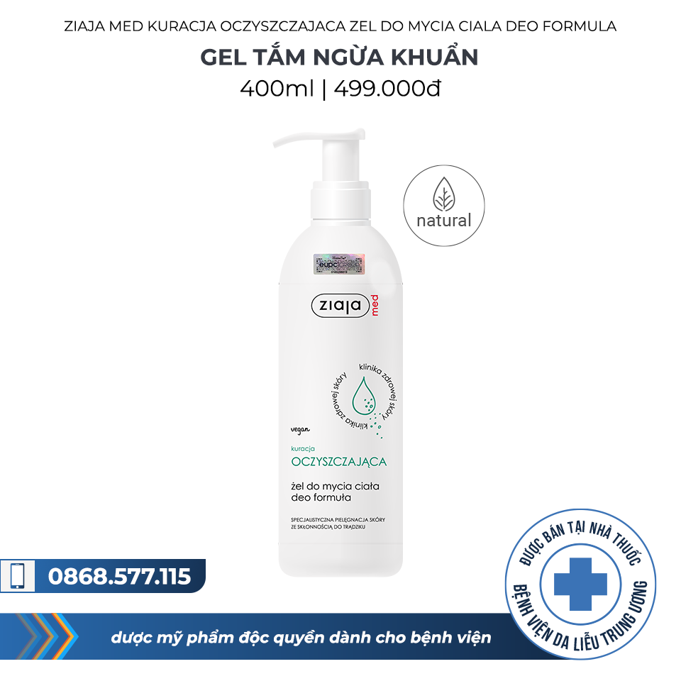 GEL TẮM NGỪA KHUẨN Ziaja Med Kuracja Oczyszczajaca Zel Do Mycia Ciala Deo Formula |