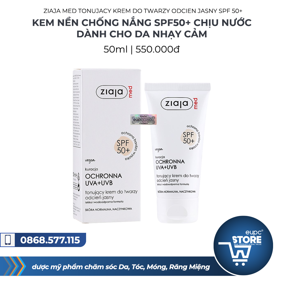 | Tên sản phẩm | : | Ziaja Med Tonujacy Krem do Twary Odcien Jasny SPF 50+ 50ml - Kem nền chống nắng SPF50+ chịu nước dành cho da nhạy cảm |