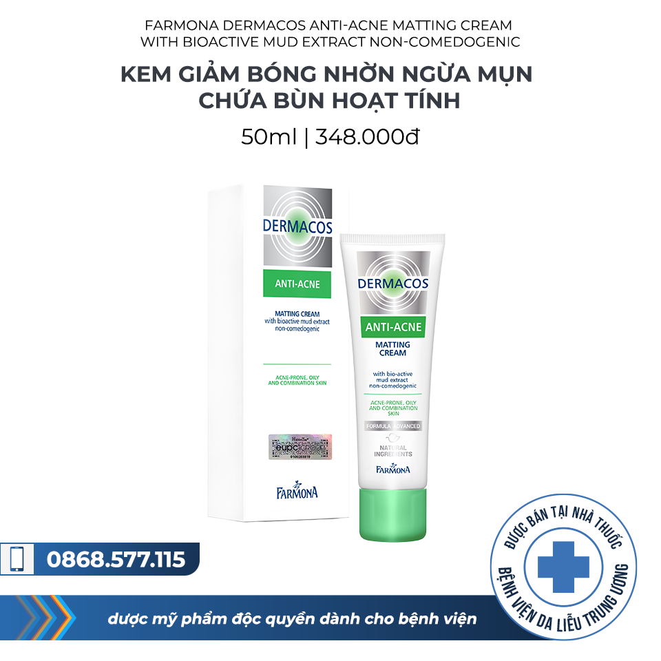 KEM GIẢM BÓNG NHỜN NGỪA MỤN CHỨA BÙN HOẠT TÍNH Farmona Dermacos Anti-Acne Matting Cream with Bioactive Mud Extract Non-comedogenic |