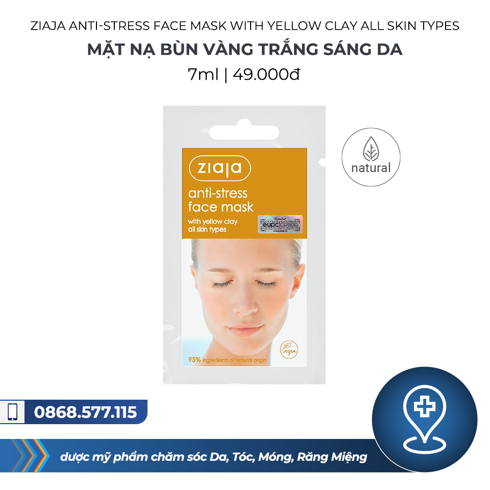 | Tên sản phẩm | : | Ziaja Anti-stress Face Mask with Yellow Clay All Skin Types 7ml - Mặt nạ Bùn Vàng Trắng sáng da |