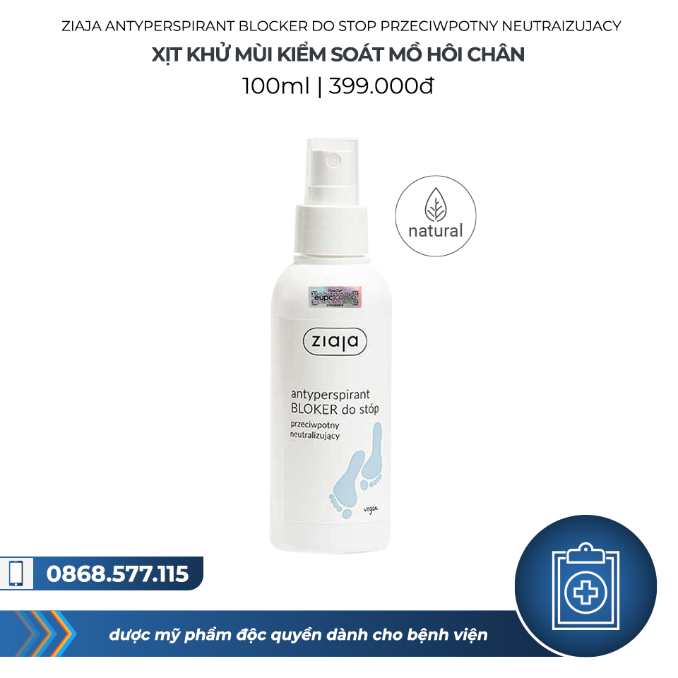 | Tên sản phẩm | : | Ziaja Antyperspirant Blocker Do Stop Przeciwpotny Neutraizujacy 100ml - Xịt khử mùi kiểm soát mồ hôi chân |